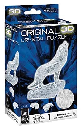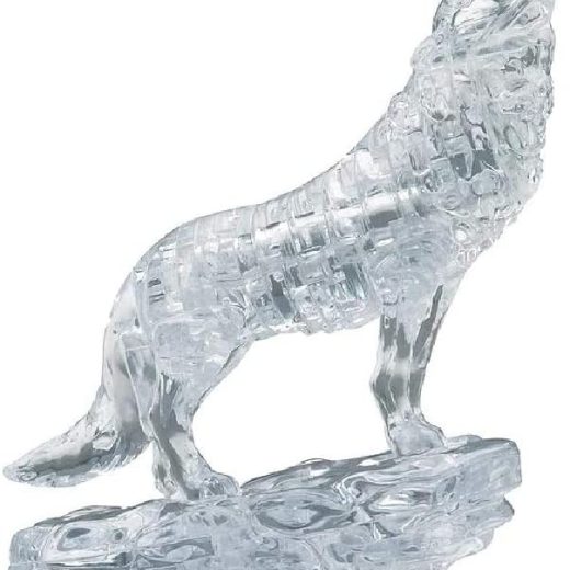 BePuzzled Original 3D Crystal Jigsaw Puzzle – Wolf Animal Assembly Brain Teaser, Fun Model Toy Gift Decoration for Adults & Kids Age 12 and Up, Clear, 37 Pieces (Level 1)