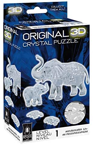 BePuzzled Original 3D Crystal Jigsaw Puzzle – Elephant & Baby Animal Assembly Brain Teaser, Fun Model Toy Gift Decoration for Adults & Kids Age 12 & Up, 46Piece (Level 1), Elephant and Baby