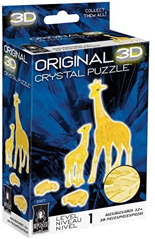 BePuzzled Original 3D Crystal Jigsaw Puzzle – Giraffe & Baby Animal Assembly Brain Teaser, Fun Model Toy Gift Decoration for Adults & Kids Age 12 & Up, 38Piece (Level 1), Yellow