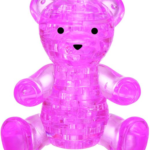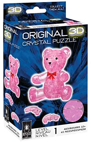 Bepuzzled Original 3D Crystal Jigsaw Puzzle – Teddy Bear DIY Assembly Brain Teaser, Fun Model Toy Gift Decoration for Adults & Kids Age 12 & Up, Pink, 41Piece (Level 1) (31081)