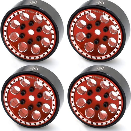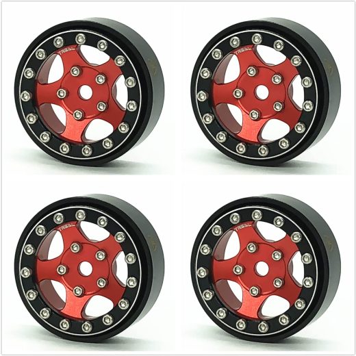 Treal 1.0 Beadlock Wheels(4P-Set) for Axial SCX24 1/24 Crawler Aluminum CNC Machined 11.2g (Red)