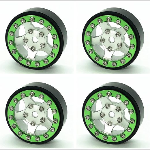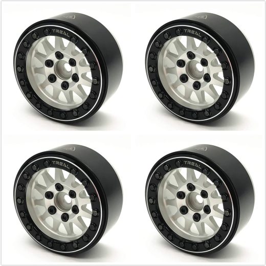 Treal 1.9 beadlock Wheels (4P-Set) Alloy Crawler Wheels for 1:10 RC Scale Truck (Silver-Black)