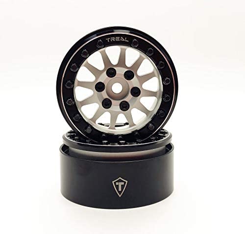 Treal 1.9 beadlock Wheels (4P-Set) Alloy Crawler Wheels for 1:10 RC Scale Truck (Silver-Black)