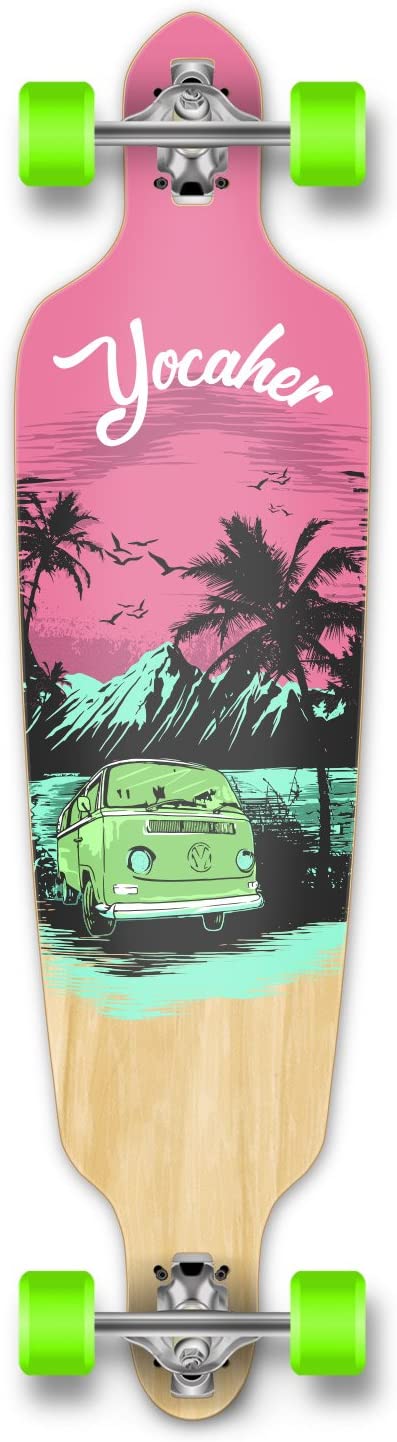 New VW Vibe Beach Series Longboard Complete Cruiser and Decks Available for All Shapes (Complete-DropThrough-Pink)