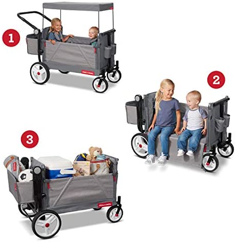 Odyssey Stroll N Wagon, Baby Push Wagon with Canopy and Bag, Grey