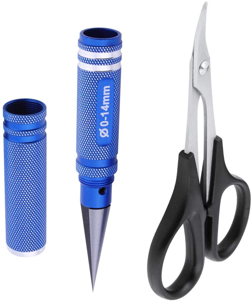 0-14mm Hole Puncher Reamer w/Sleeve and Curved Scissors Set Universal Tool for RC Car Body Shell Lexan Plastic (with Blue Reamer)