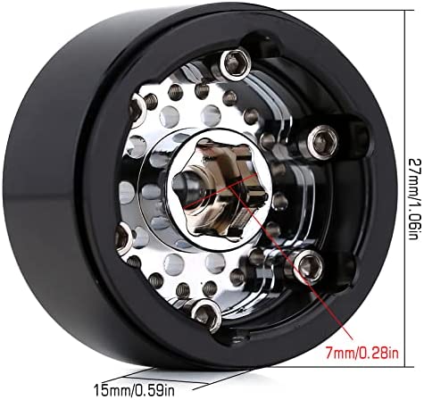 Note: Some light scratches on the bright silver surface is normal. Please consider whether it is acceptable before you place a order. Features: Bright sliver anodized finish, look more gloss CNC aluminum machined, strong and sturdy 1.0 Beadlock design, dont need to glue Equipped with a nut cover, easy to install Good use for upgrade Axial SCX24 or other mini/micro crawler Specifications: Material: Aluminum alloy Color: Silver & Black Weight: 14g/pcs (0.49oz) Outer Diameter: 27mm / 1.06in Width: 15mm / 0.59in Wheel Hub: 7mm / 0.28in Suit for: RC Crawler Axial SCX24 or other mini/micro crawler. Package List: 4 * RC Car Wheel Rim