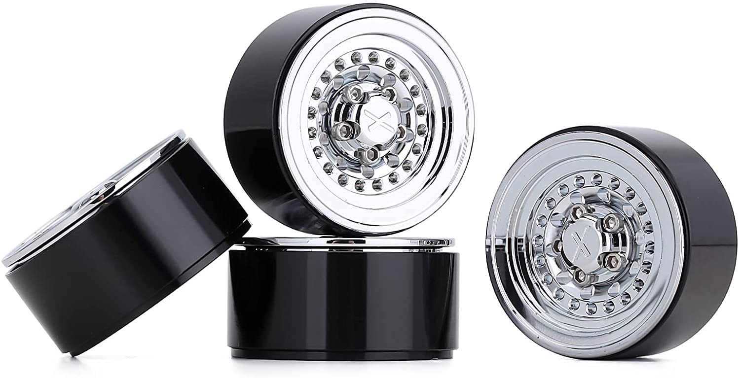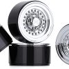 1.0 Beadlock Wheels 4PCS Wheels Rims for 1/24 RC Crawler Car Axial SCX24 AXI90081 AXI00001 AXI00002 AXI00004 Upgrade Parts(Silver)