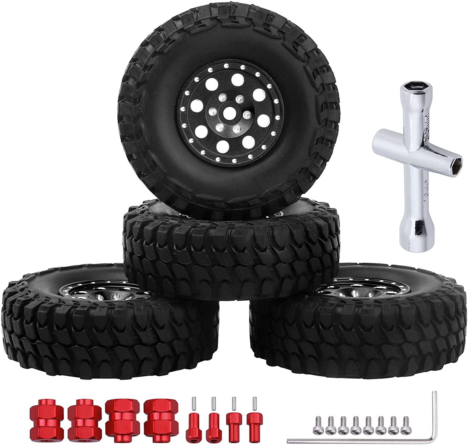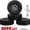 1.0 Beadlock Wheels and Tires Metal Micro Crawler Tires w/Wheel Spacers Offset for 1/24 RC Crawler Car Axial SCX24 AXI90081 Deadbolt AXI00002 Jeep Wrangler (Set of 4) (Black Rims)