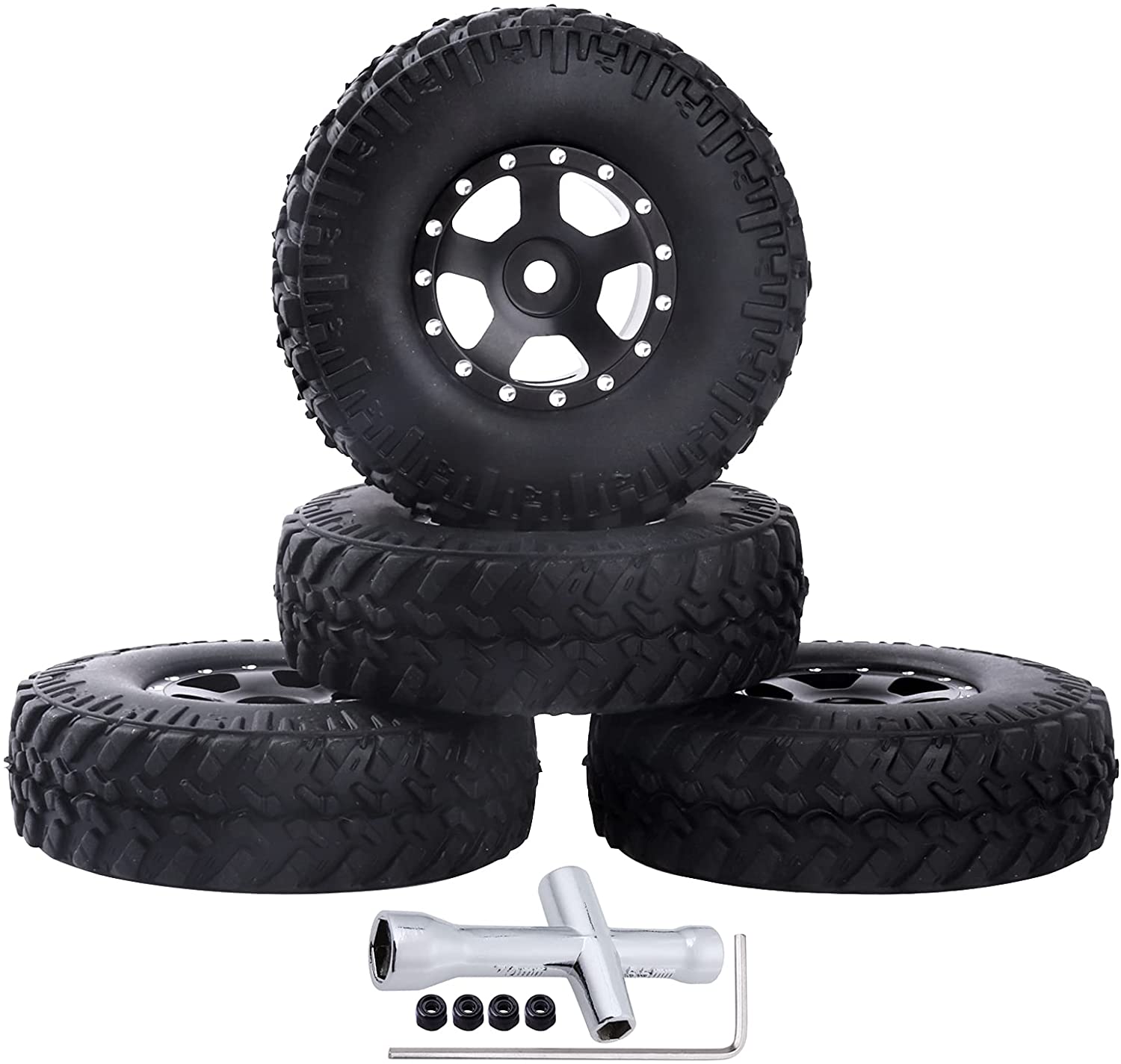 1.0 Beadlock Wheels and Tires w/Foam Inserts 4PCS Metal Micro Crawler Tires for 1/24 RC Crawler Car Axial SCX24 90081 AXI00001 Deadbolt Chevrolet C10 Upgrades (Type 1)