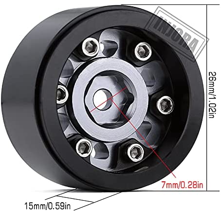 1.0 Beadlock Wheels Hub Metal Micro Wheel Rim for 1/24 RC Crawler Car Axial SCX24 90081 AXI00001 Deadbolt B-17(Black&Grey)