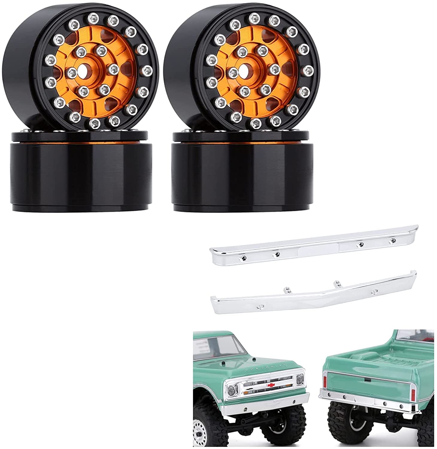 1.0 Beadlock Wheels Rim and RC Bumper Set for 1/24 RC Crawler Car Axial SCX24 90081 AXI00001 Deadbolt B-17
