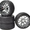 Features: Material: Tires->Rubber; Wheel Rim-> Aluminium Diameter:2.56(65mm) Width: 1.02 (26mm) Hex Drive Hub: 12mm Compatible with: 1/10 Scale On Road Touring Car,etc Also work on 1/16 E-Revo If you have 12mm Adapter, it may work on your 1/18 scale models Note:Do not fit Rally / Off Road Truck / Truggy / Buggy Check your specific models manual for compatibility,or Contact us. Item: 4xRC Tires & Wheel Rims Note:Tires and Wheel Not Glued, mounted on rim only,can be split