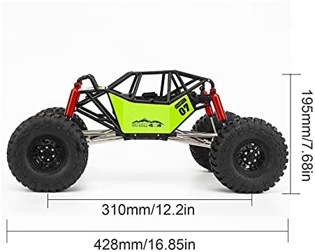 Required to Complete (not included): Transmitter, Receiver, Esc, Servo, Battery, Charger(Not Included) Specifications: Materials Roll Cage: Plastic & Nylon Link: Metal Drive Shaft: Metal Gearbox: Nylon Axle: Nylon Shock Absorber: Metal Length: 428mm / 16.85in Width: 235mm / 9.25in Height: 195mm 7.68in 1.9 Tires Size: 121*45mm / 4.76*1.77in Wheelbase: 310mm / 12.20in Ground axis: 40mm / 1.57in NOTE: Please check the size and compatibility before ordering, the size please allow +/- 1cm error due to manual measurement. Package Included: 1 * 1/10 RC Rock Crawler Buggy Chassis with Wheels