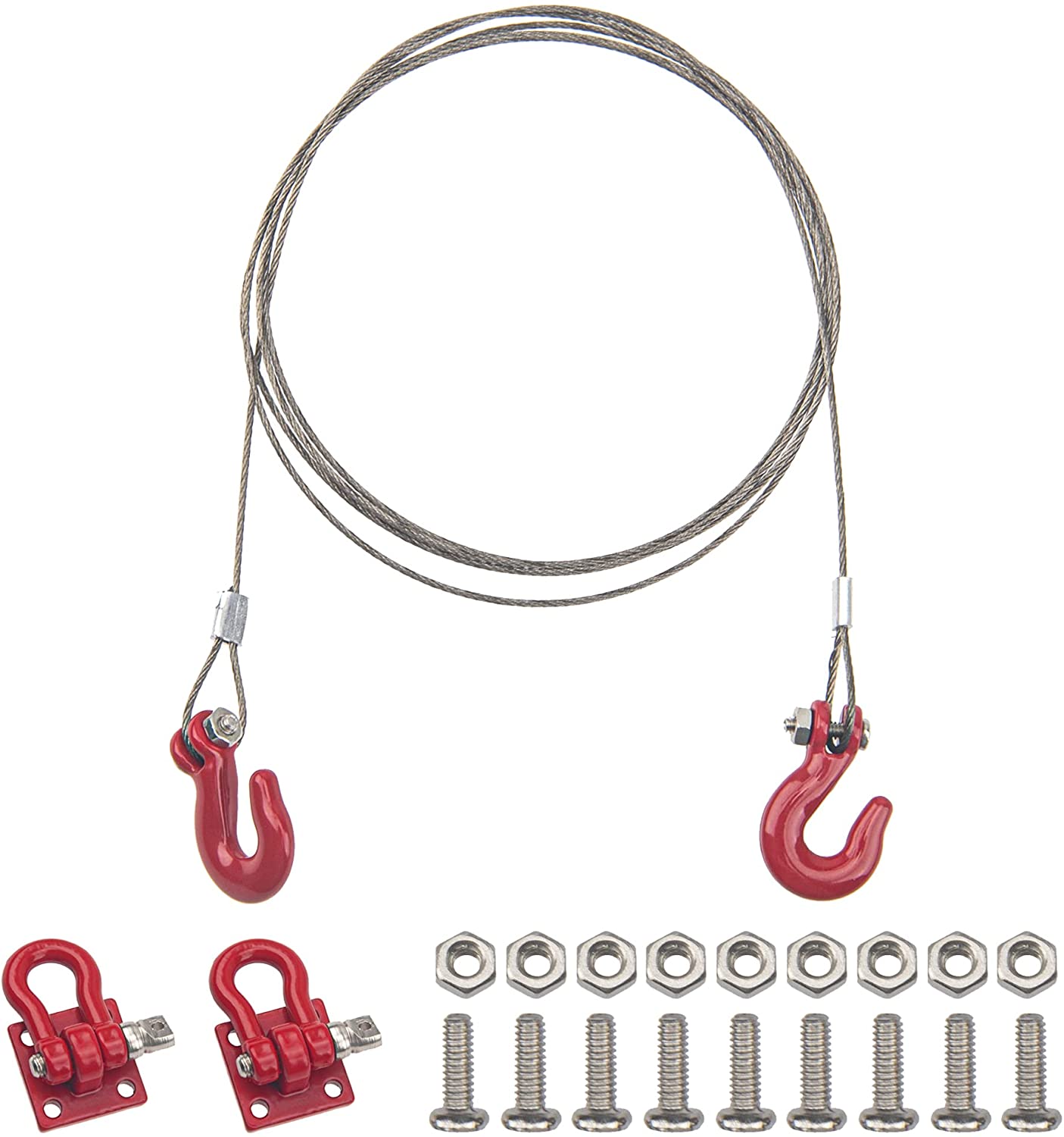 Note: 1.The color of the item may vary slightly due to photography and your own computer 2.If you are not 100% completely satisfied with our products,or,if you have any question, please feel free to contact us. Universal 1/10 RC scale decoration accessories,suitable for 1/10 RC crawler car truck. Compatible with Axial SCX10 Traxxas TRX4 90046 Tamiya CC01 D90 TF2 Redcat Gen7 HPI HSP 90047 RC4WD 1/10 RC Crawler Car. This metal tow hook and tow rope are made of high quality metal material,it is durable.The tow rope can simulate pulling the rc car out of the quagmire,better than trailer chain,wont break. The simulation accessories enhances the authenticity of the remote control car, make your rc car more cool and attractive,eyes-catching,add more fun to your remote control models. Great RC decor accessories for your RC model car,Unassembled but easy to install,adds to the scale realism when installed on your rc car. It is a very attractive decoration accessories. Item Name:RC Hook with Tow Rope Material: Metal. RC Hook Size:Approx.12.5mmx12.5mm/4.91×4.91 Hook Installation Hole Distance:9mm/0.35; RC Tow Rope Length: Approx 95cm/37.4 Main Color:Red Package Contents: 1 x RC Trailer Shackle 1 x RC Tow Rope