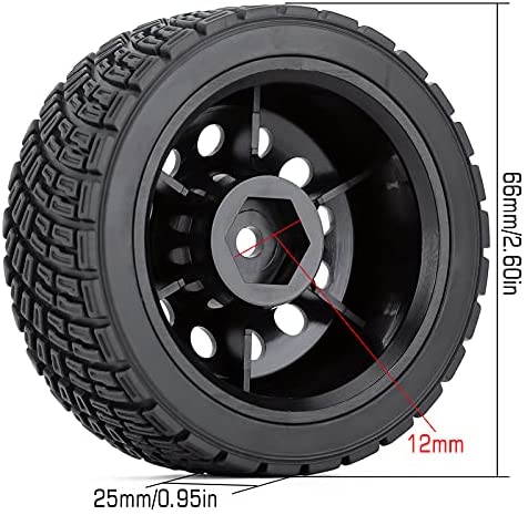 Note: You need to glue the rims and tires by yourself Features: With foam insert, easy to install Made of high quality rubber, sturdy and durable Increased the depth of the tread pattern, better stability Four colors are available, meet the needs of RC fans Suit for 1/10 RC Rally Car HSP RGT LC RACING PTG-2 Tamiya TT02 Specifications: Rim Material: Plastic Tires Material: Rubber Quantity: 4Pcs Weight: 34g/pcs Outer Diameter: 66mm / 2.60in Width: 25mm / 0.95in Drive Hex: 12mm Color:Black Suit for 1/10 Rally RC Car Package List: 4 * RC Car Rally Wheel Tires