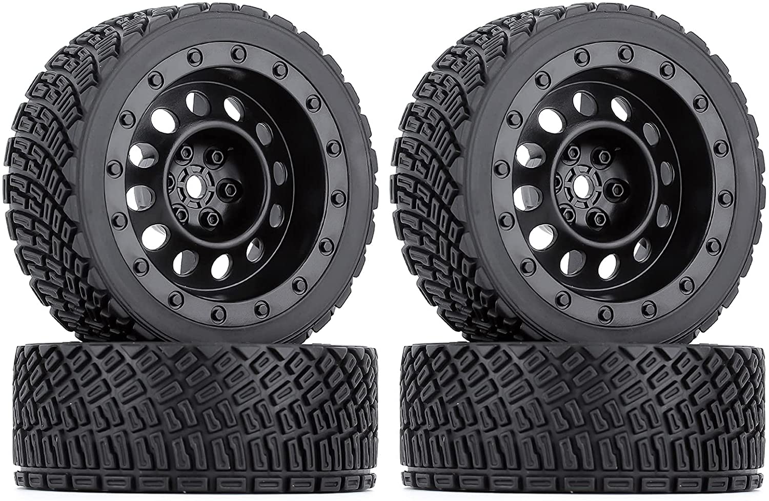 1/10 Rubber Wheel Tires for 1/10 Rally RC Car HSP RGT LC Racing PTG-2 Tamiya TT02,6625MM (Black)