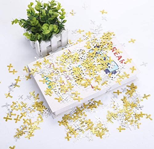 1.6 Ounce Crossed Christening Confetti Gold Silver Glitter Cross Metallic Sequins Table Scatter for Baby Shower, Wedding, Birthday, Communion Baptism, and Christmas Party Decoration by Topfunyy