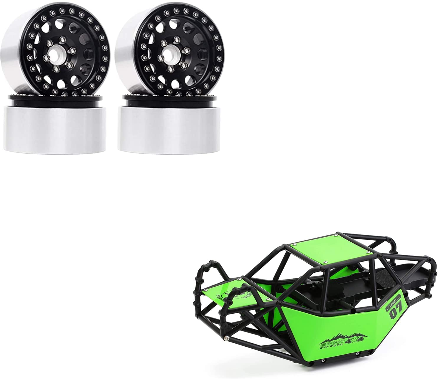1.9 Inch Beadlock RC Wheel Rim Set and Roll Buggy Body Shell for 1:10 RC Crawler Axial SCX10 SCX10 II 90046 SCX10 III AXI03007 TRX4 D90