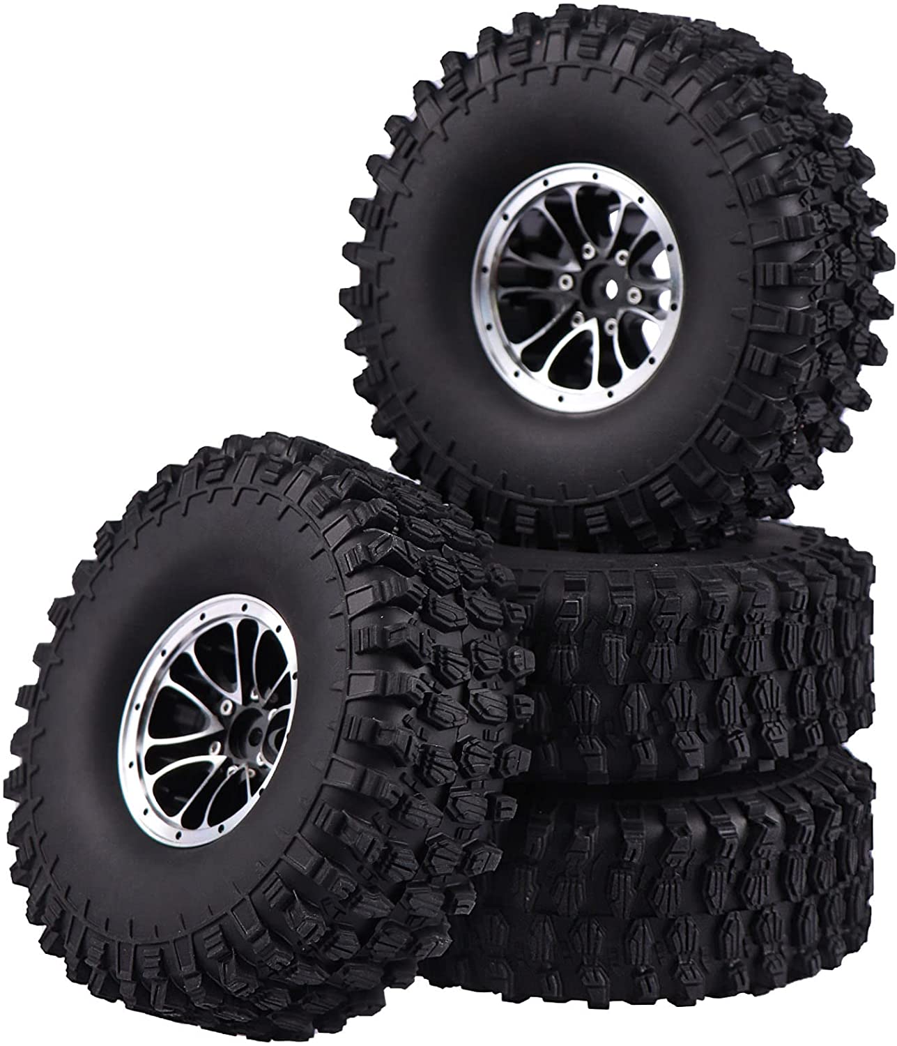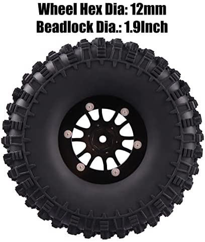 1.9 Inch RC Crawler Aluminum Beadlock Wheels Rims and Tires Out Dia. 4.7 Inch for 1/10 Axial SCX10 II Traxxas TRX4 Blazer RC4WD D90
