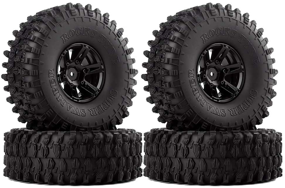 1.9 Inch Tyre Set 4Pcs Beadlock Wheel Rim and Rubber Tires for 1/10 RC Crawler Axial SCX10 90046 (Black)