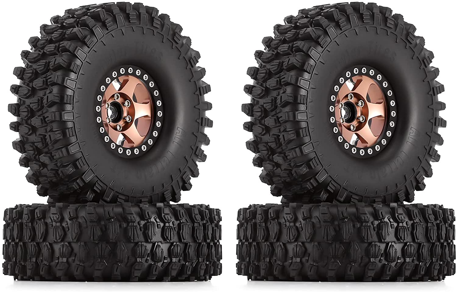 1.9 RC Crawler Tires and Wheels Beadlock Rims 4pcs Tires Set for 1/10 RC Crawler Axial SCX10 90046 AXI03007 TRX4 (Copper)