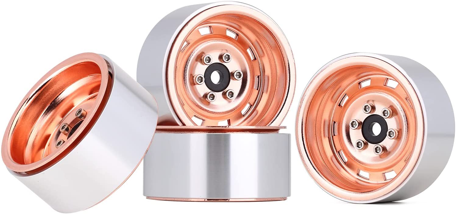 1.9 Wheel 4pcs Metal Beadlock Wheel Rim Hub for Axial SCX10 90046 TRX4 D90 1/10 RC Crawler Car,Gold