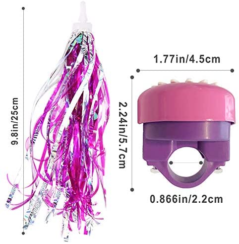 Cute Kids Bike Decorations Set come with 1 Pack kids bicycle bell and 2pcs bicycle streamers. A simple and interesting way for kids to dress up their bikes.