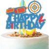 1 Pcs Glitter HAPPY BIRTHDAY Nerf Theme Cake Topper,Gun for Target Birthday Party Cake Decoration,Dart War Cake Topper Cake Picks for Boys
