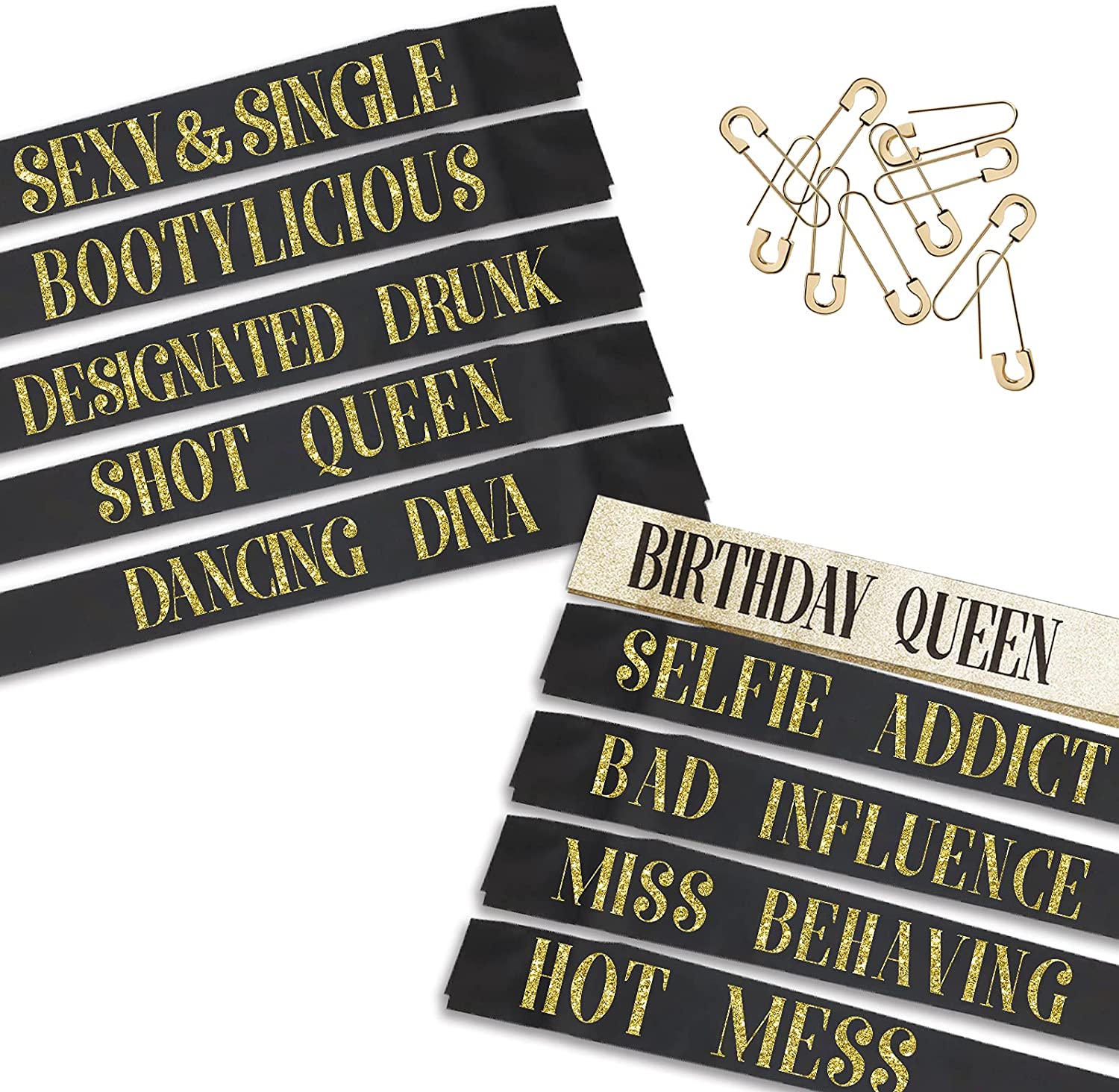 10 Birthday Sashes Set for women group | Happy Birthday Favor Supplies Glitter Sashes | Funny Birthday Sashes for Women | 9 Funny Decoration Sashes,1 Glitter Birthday Queen Sash (BIRTHDAY QUEEN)