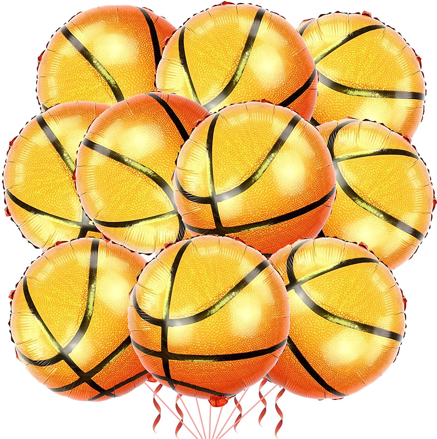 10 Pack 18 Inch Basketball Foil Balloons Helium Metallic Mylar Balloons for Birthday Party Sports Theme World Cup Party Decorations