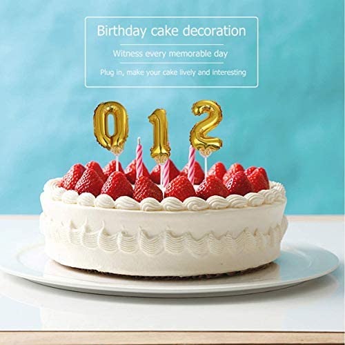 10-Pack Number 0-9 Cake Toppers Foil Balloons Party Balloons Mini Cupcake Topper for Wedding Birthday Party Decoration – Golden