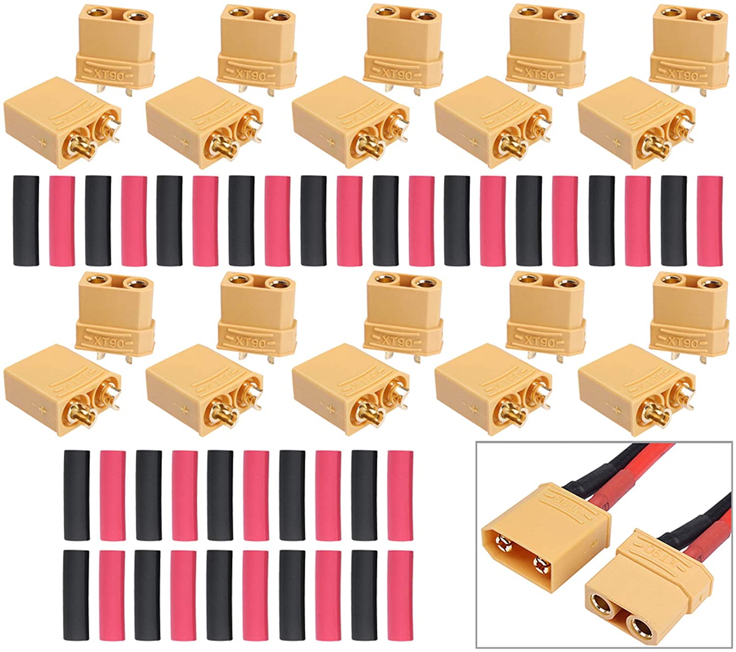 10 Pairs HobbyPark XT90 Connectors Male Female High-Amp Power Plugs with Heat Shrink Tubing for RC Lipo Batteries Pack Motor