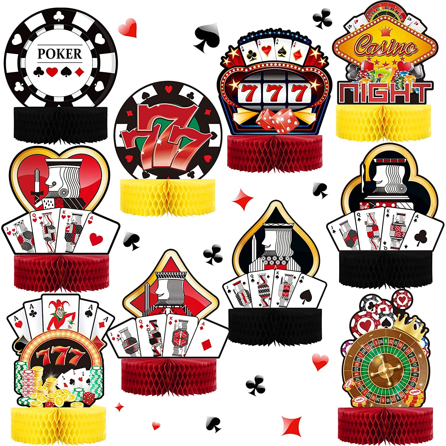 10 Piece Casino Theme Party Honeycomb Centerpiece Casino Theme Party Decorations Creative Casino Theme Party Cake Ball Table Topper Casino Theme Paper Centerpiece for Birthday Party Baby Shower Supply