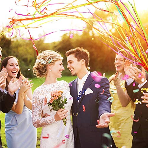 10 Pieces party streamers colorful paper throw streamers for birthday wedding graduation party favors shows Wonderful party decoration: Colorful streamers will bring good effect for Shows, Birthday, Christmas, Halloween, Wedding parties, most important fact no mess, easy to clean. How to use: Run your fingers through the ring handle and rip the bottom paper of the throw streamer, and toss it up at a 45 degree angle, and these streamers are festive without the trash, wont cause mess, great for the beach wedding as it did not leave litter. Specification: Quantity: 10 pieces Color: as the pictures shown Package includes: 10 x Throw streamer