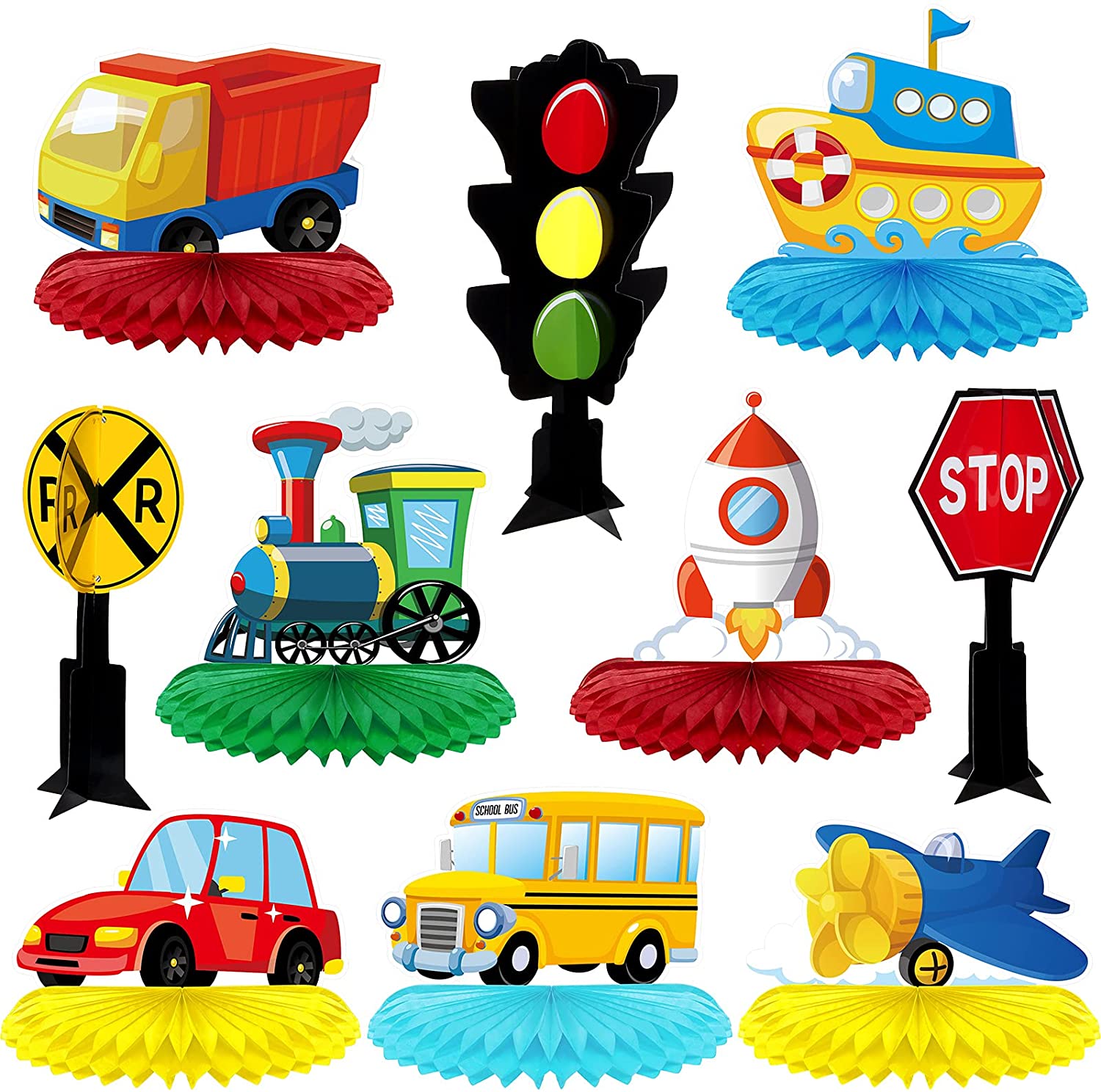 10 Pieces transportation centerpiece boat airplane car honeycomb centerpiece traffic lights traffic signs transportation theme party supplies trans…