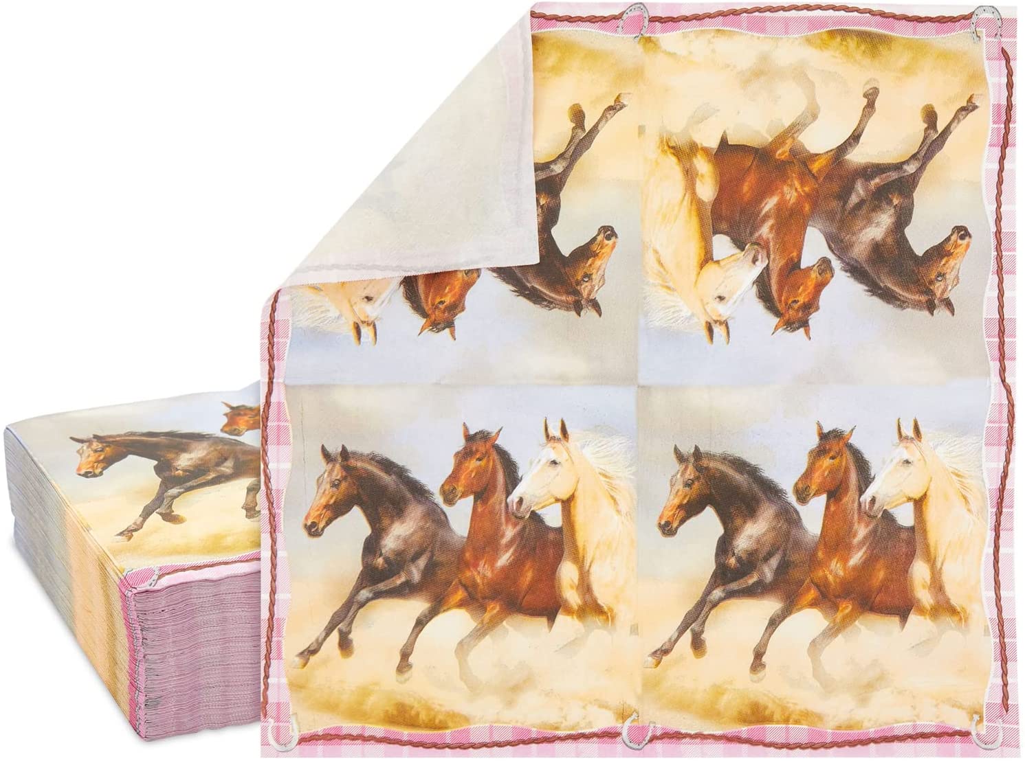 100 Pack Horse Cocktail Napkins, Cowgirl Birthday Party Supplies Pink (6.5 x 6.5 in)