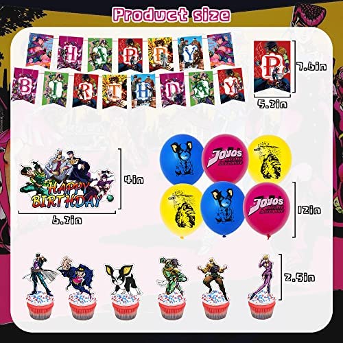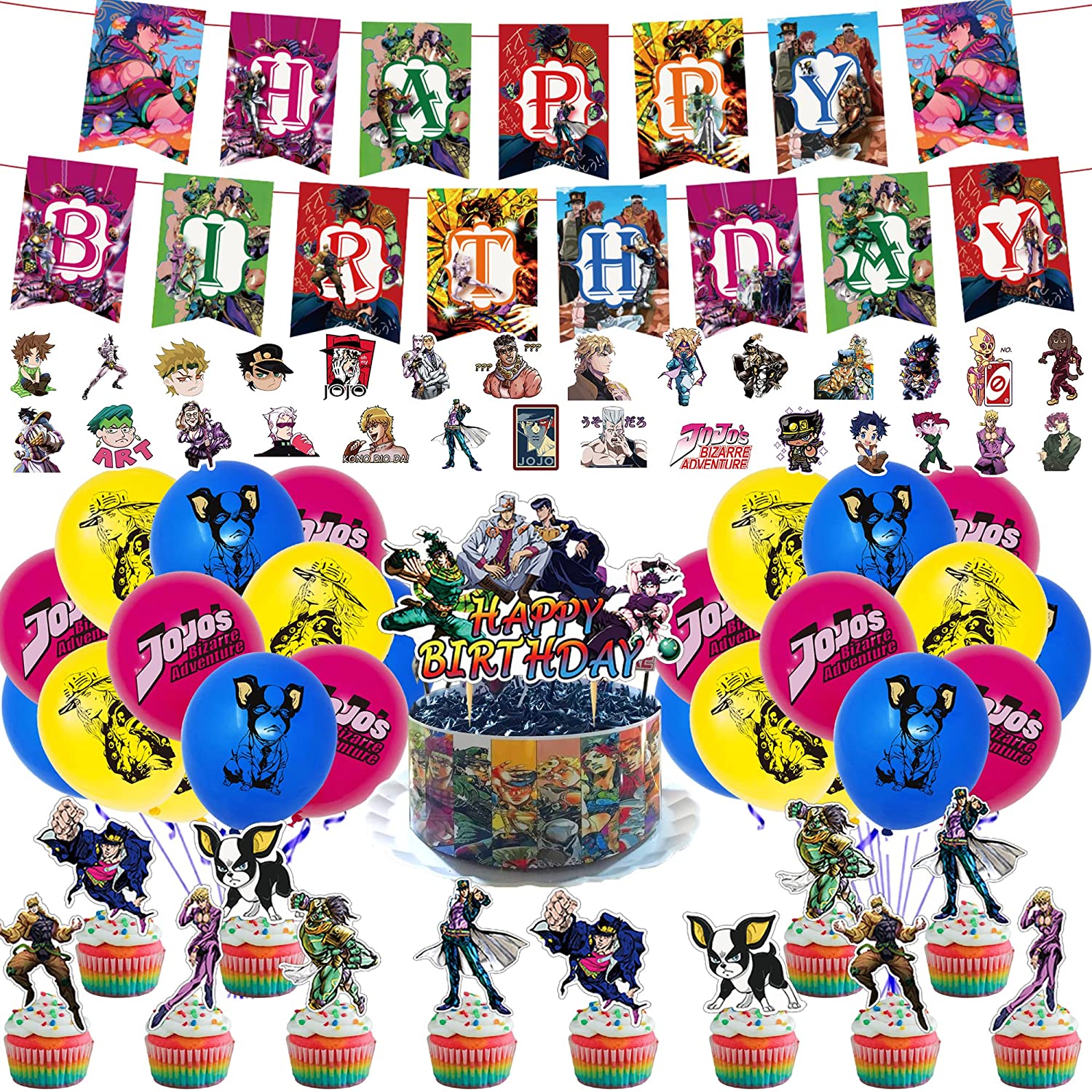 100 Pcs Jojo Party supplies, Birthday Party Supplies Set Include Banners, Cake Toppers, Latex Balloons and Stickers For Kids and Adults