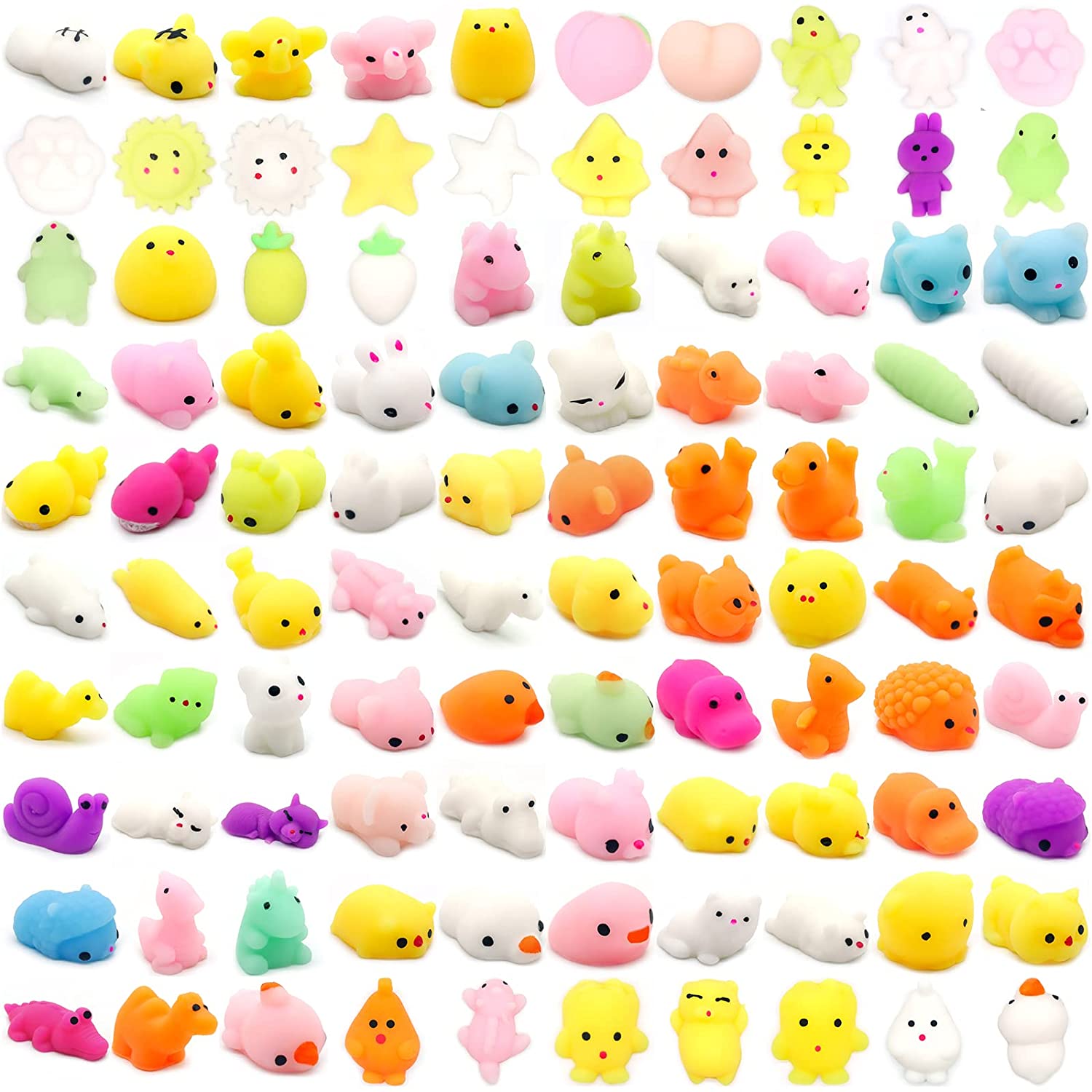 100 Pcs Mochi Squishy Toy PackKawaii toys for kids and adults great assortment with attractive animals and a variety of different vegetable fruit shapes, with soft touch, every kid would love these cute mochi animals toys and get days of enjoyment and fun from it! Safe for Kids & High QualitySquishy fidget toys are made of high quality TPR material meet to the highest quality standards you should expect, which is Non-Toxic and Latex-Free. Can withstand a fair amount of squeezing, pinching, fidgeting & stretching, perfect size for hands to squeeze. Perfect Party FavorsSquishies pack as a surprise gift great for almost occasions like Christmas presents, Easter basket stuffers fillers, birthday gifts, goodie bags stuffers, Carnival and classroom prizes, stress relief toys, pinata filler toys, preschool props, teaching aids. Novelty gifts to surprise your kids and friends! Easy to CleanMini squishies can be rinsed with a little soap if they are dirty after palying, and never lose their shapes. You cant stopping squeezing these christmas squishies because of the great touch feeling and kawaii shapes. Great sensory toys suitable for everyone. Develop Imagination & FitnessMini animal kawaii squishy pack stimulate kids imagination well. Let children quickly recognize various animals, vegetables and fruits. Both kids and adults love squishy toys. In imperceptible squeeze, fully increase blood circulation of hand, exercise brain and arouse creativity.