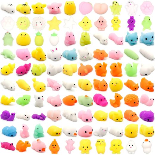 100 Pcs Mochi Squishy Toy PackKawaii toys for kids and adults great assortment with attractive animals and a variety of different vegetable fruit shapes, with soft touch, every kid would love these cute mochi animals toys and get days of enjoyment and fun from it! Safe for Kids & High QualitySquishy fidget toys are made of high quality TPR material meet to the highest quality standards you should expect, which is Non-Toxic and Latex-Free. Can withstand a fair amount of squeezing, pinching, fidgeting & stretching, perfect size for hands to squeeze. Perfect Party FavorsSquishies pack as a surprise gift great for almost occasions like Christmas presents, Easter basket stuffers fillers, birthday gifts, goodie bags stuffers, Carnival and classroom prizes, stress relief toys, pinata filler toys, preschool props, teaching aids. Novelty gifts to surprise your kids and friends! Easy to CleanMini squishies can be rinsed with a little soap if they are dirty after palying, and never lose their shapes. You cant stopping squeezing these christmas squishies because of the great touch feeling and kawaii shapes. Great sensory toys suitable for everyone. Develop Imagination & FitnessMini animal kawaii squishy pack stimulate kids imagination well. Let children quickly recognize various animals, vegetables and fruits. Both kids and adults love squishy toys. In imperceptible squeeze, fully increase blood circulation of hand, exercise brain and arouse creativity.