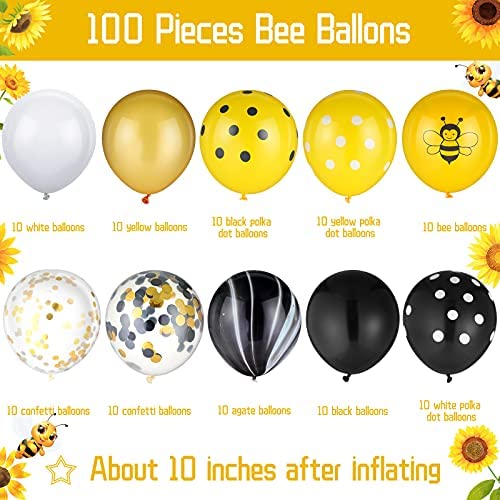 100 Pieces Bee Balloons Decorations Kit Happy Bee Day Balloons Bee Dots Balloon Confetti Balloons Black Yellow Latex Balloons Bee Theme Party Balloons for Bee Birthday Party Decoration, Baby Shower