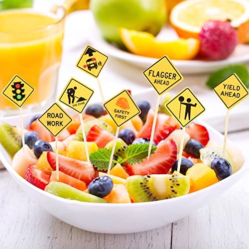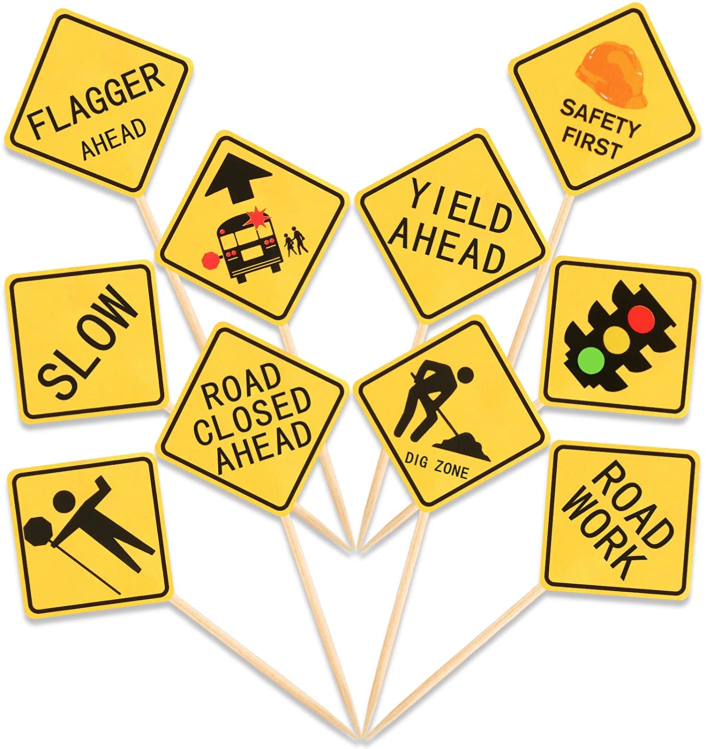 100 Pieces Construction Cupcake Topper Road Sign Birthday Cake Toppers Construction Theme Cupcake Toppers Construction Cake Decorations Construction Road Sign Picks for Kids Birthday Party Supplies
