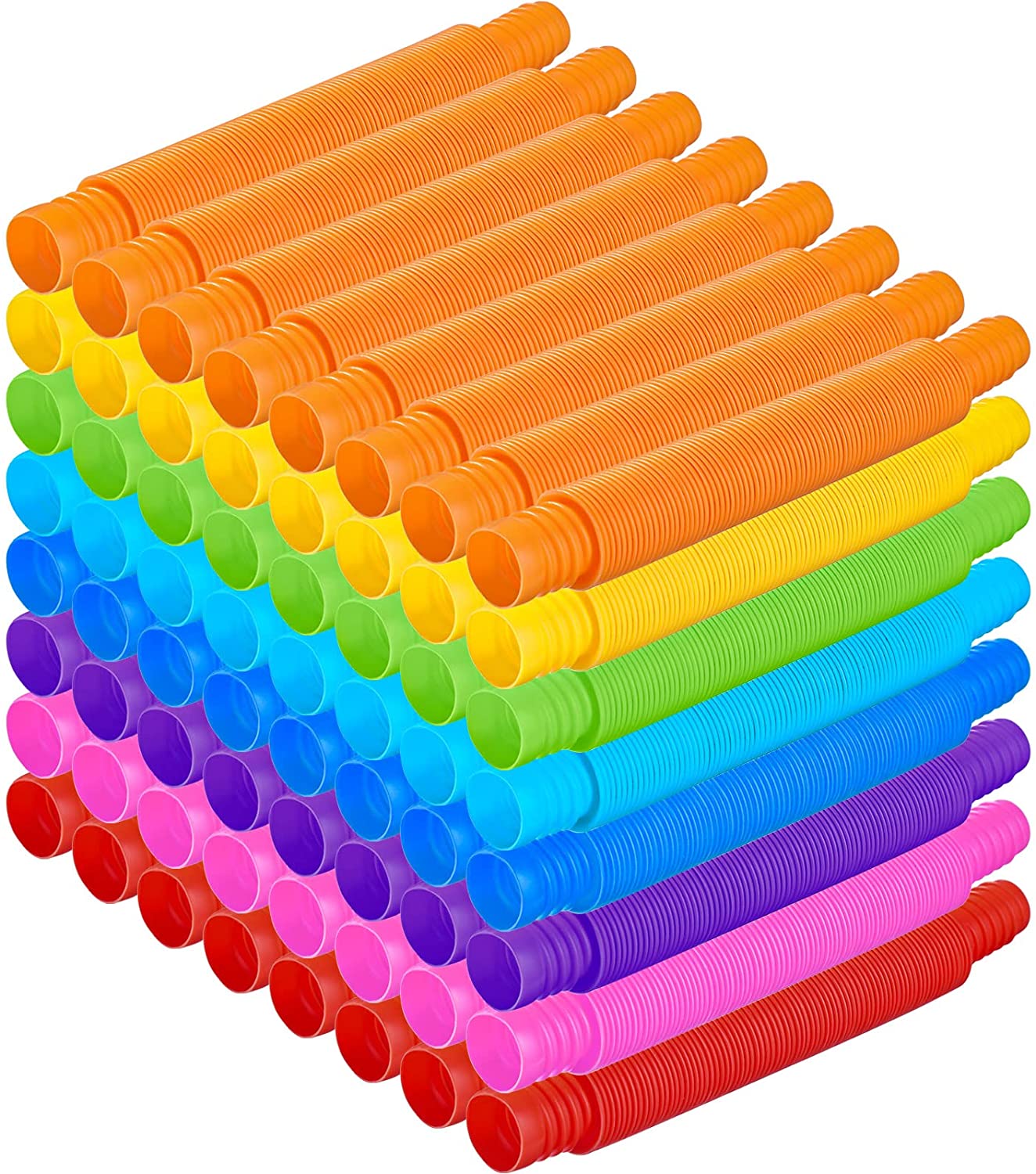 Feature: Fun and colorful toys: Multi-Colored stretch fidget toys can be bent into different shapes and can be attached together to create a very long tube, providing hours of fun and enjoyment. These stretch toys are made for all busy little fingers, cultivating your finger flexibility. Wide application: These fun pull tube toys are suitable as rewards for all kinds of activities, gifts for family and friends, family gatherings, DIY and more. On different occasions, the tubes can ease the mood and create different shapes according to your own imagination. Specifications: Material: plastic Color: as the pictures shown Size: 0.75 inch/ 1.9 cm Package include: 100 x Tubes sensory toys Warm notes: Please allow slight deviation in size due to manual measurement. Please allow slight color differences due to different monitors.