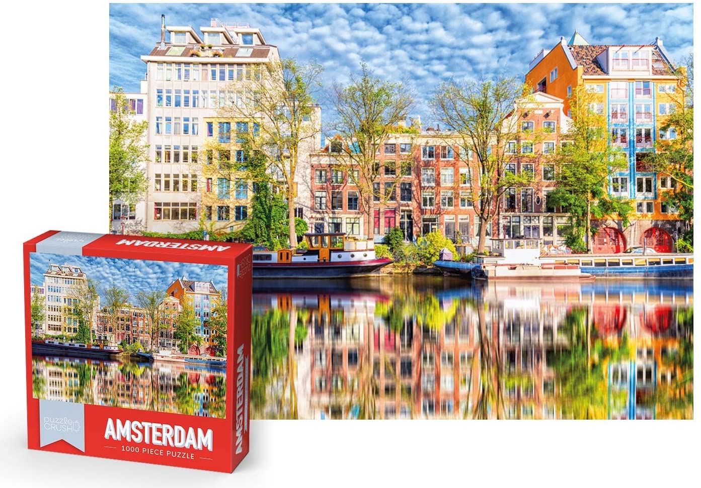 1000 Piece Puzzle for Adults by Puzzle Crush – Amsterdam – Colorful Holland Boat Canal – Landscape Jigsaw Puzzles for Adults, Teens and Families