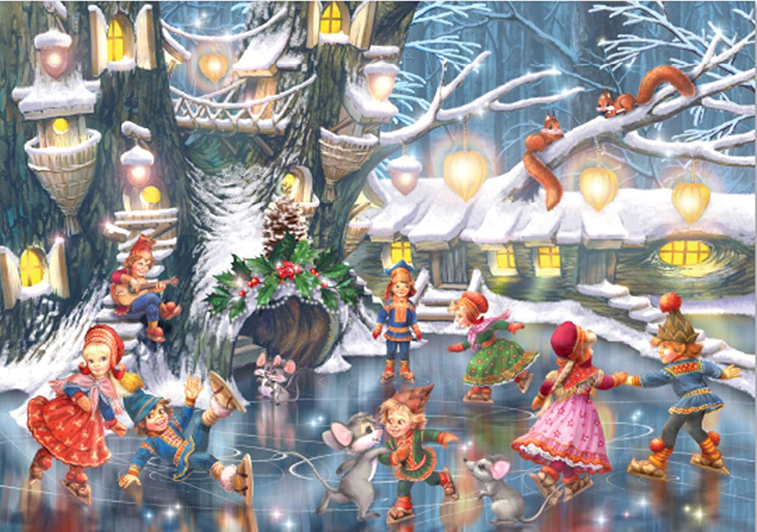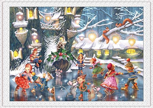 1000 Piece Wooden Jigsaw Puzzle – Ice Skating – Kids Playing with Animals on ice – Christmas Party Puzzle for Kids Adult Teens Reduced Pressure Toy Gift