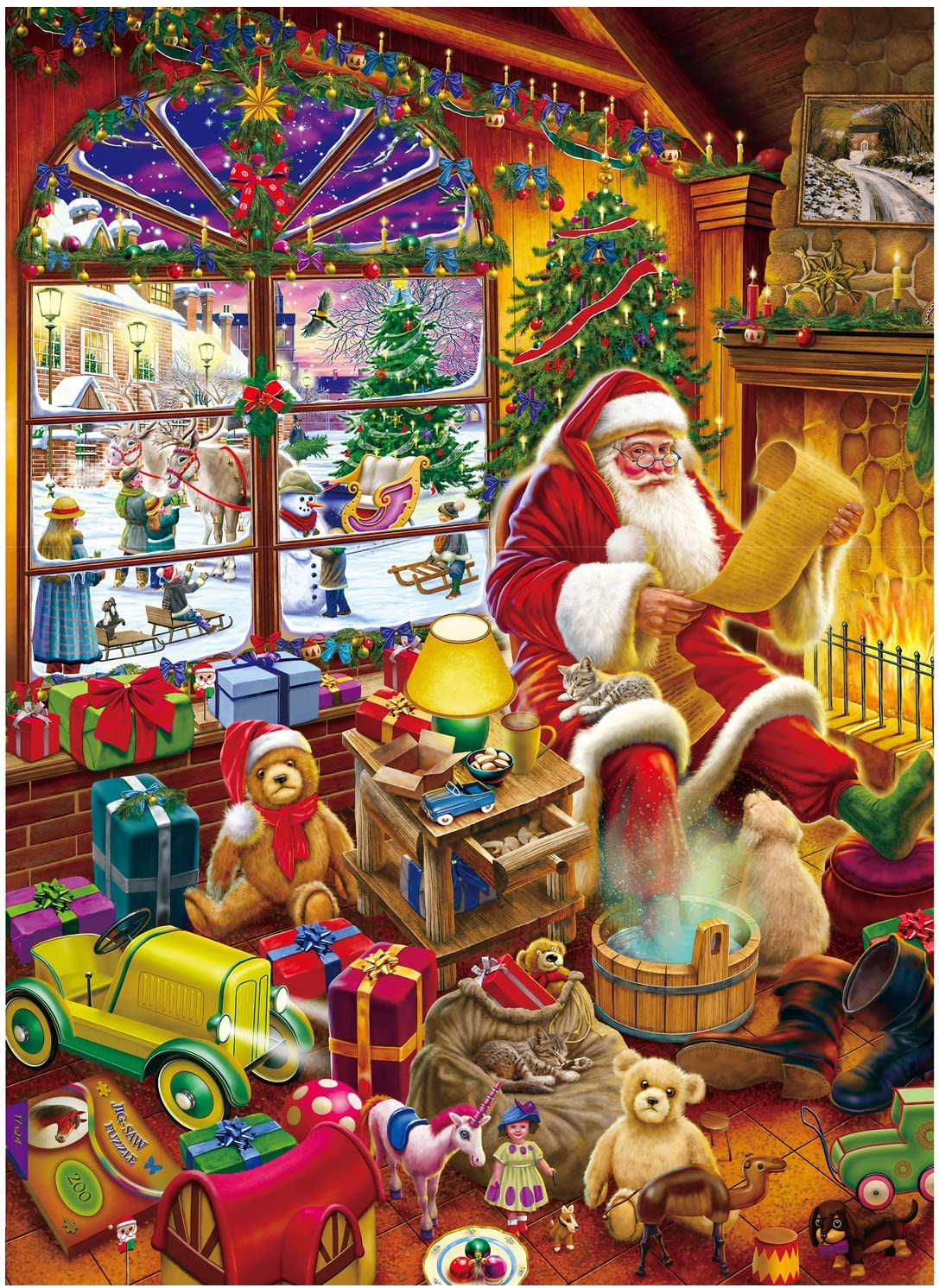 1000 Pieces Christmas Puzzles for Adults Jigsaw Puzzle Xmas Puzzle Santa Claus with Christmas Tree Puzzles – Christmas Night(27.6 x 19.7in)