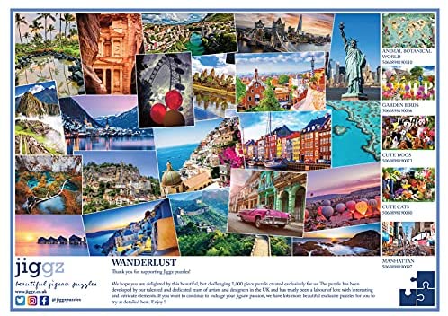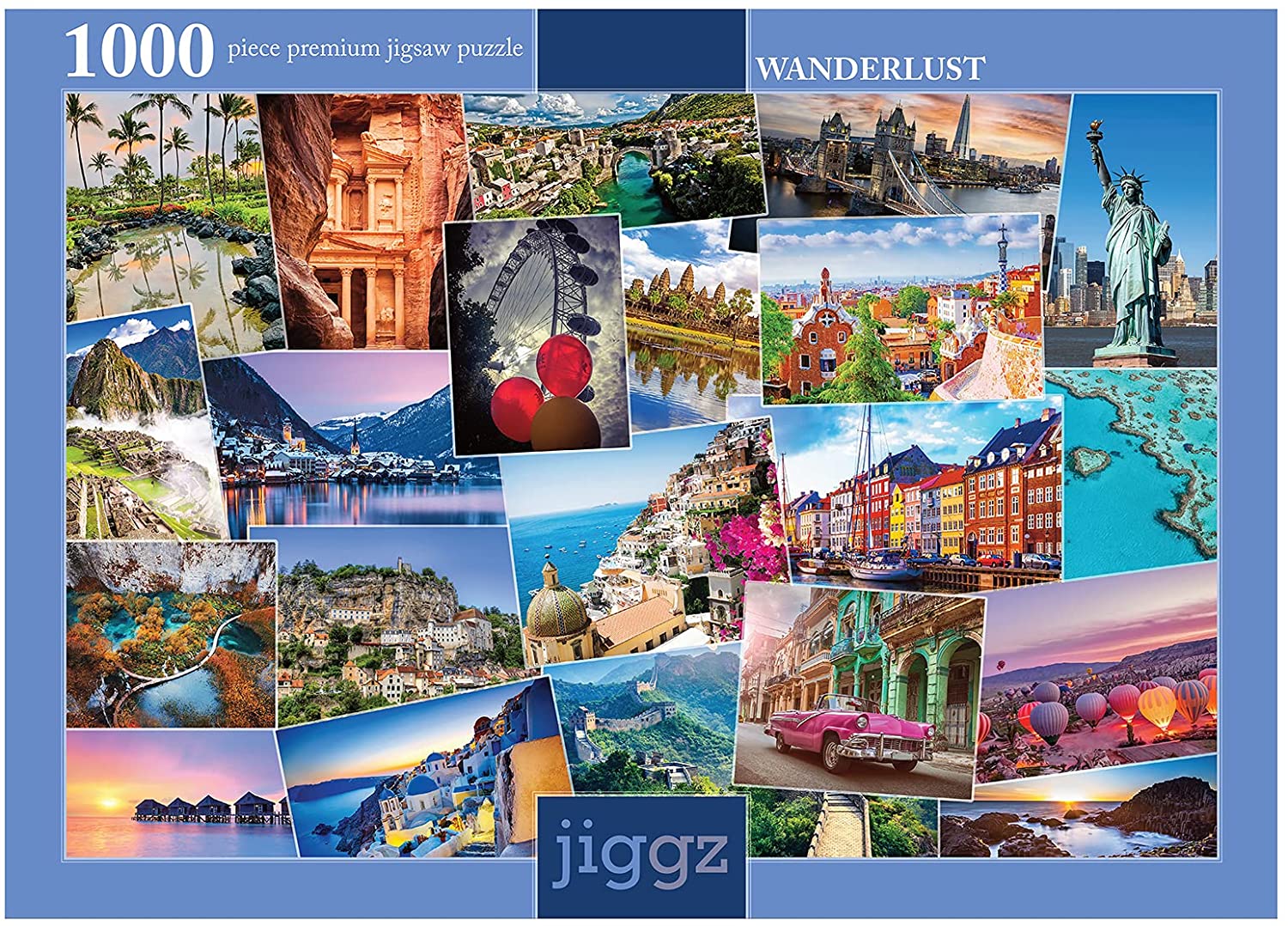 1000pc Jiggz Wanderlust Travel Premium Jigsaw Puzzle – Every Piece is Unique – Challenging Adult Family Fun Game – New York City, London, World, Hawaii, Copenhagan Postcards