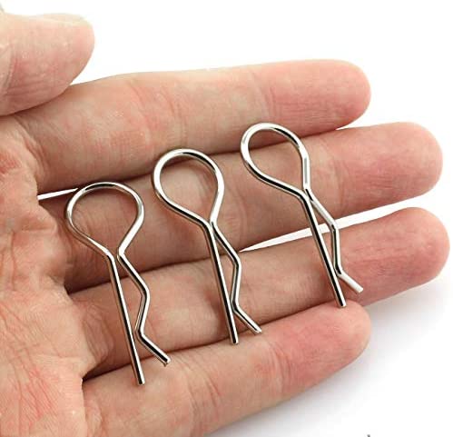 100pcs 1/16 RC Body Clip Small Bent Body Clips Metal Cotter Pins Springy R Shape Snap Pin Clips for RC HSP Car Truck Buggy Crawler Parts