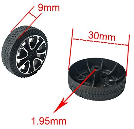 Features: Material: Plastic Main Color: Black, Silver Shaft Dia: 1.95mm/0.08. Suitable for 2mm shaft Diameter: 30mm / 1.2 . Tire width: 9mm / 0.36 …