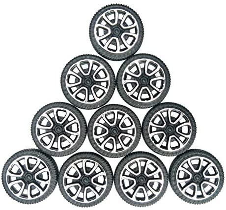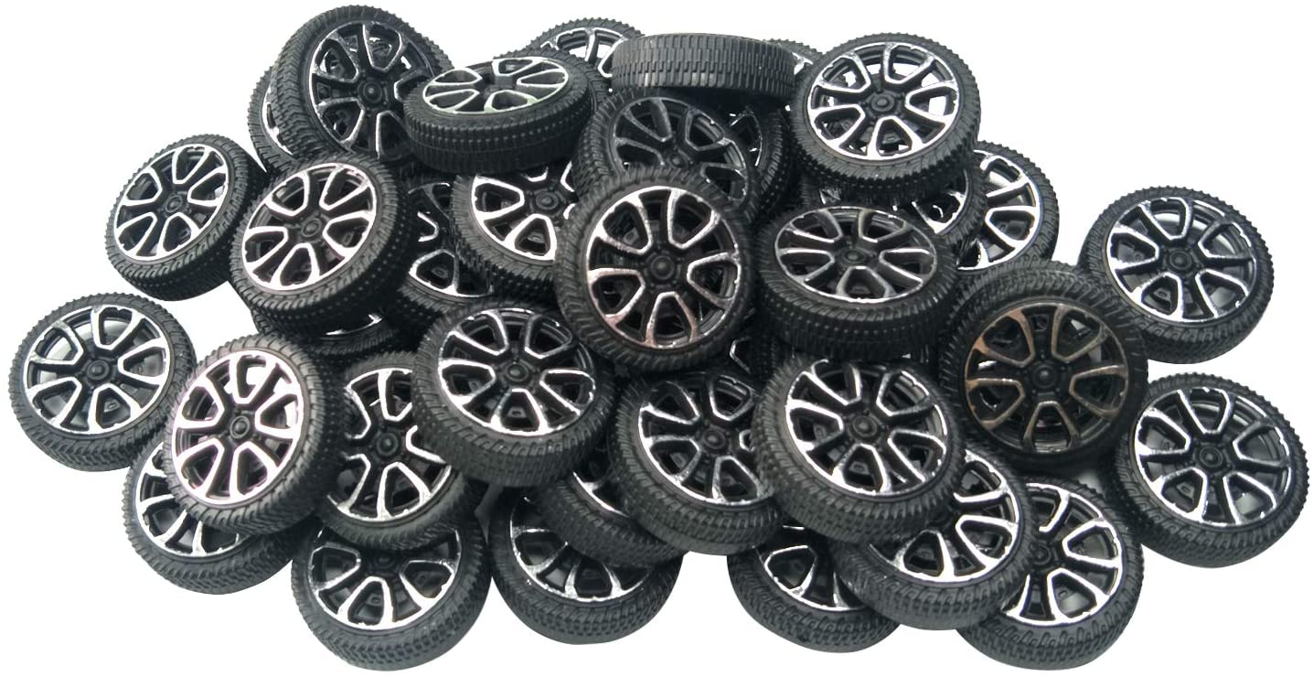 Features: Material: Plastic Main Color: Black, Silver Shaft Dia: 1.95mm/0.08. Suitable for 2mm shaft Diameter: 30mm / 1.2 . Tire width: 9mm / 0.36 . Package: 100 x Plastic Roll 2mm Dia Shaft Car Truck Model Toys Wheel